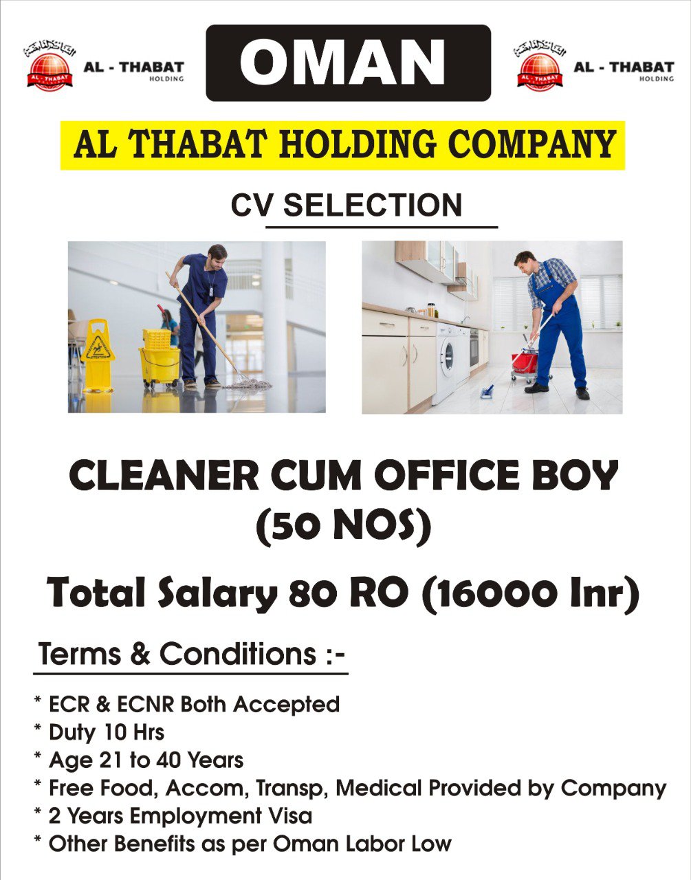 Cleaner cum Office Boy for Oman