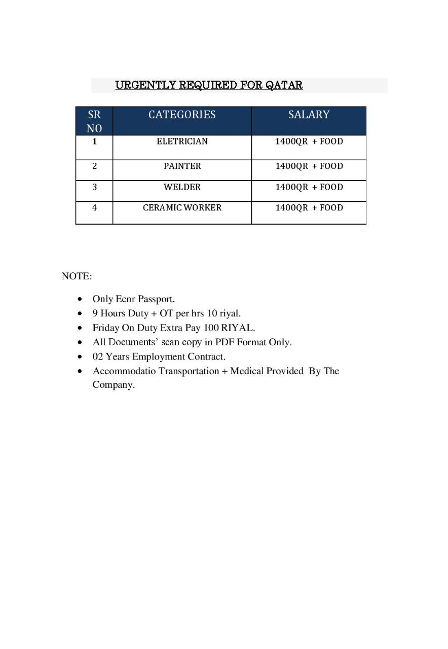 Electrician – Painter – Welder – Ceramic worker for شركة الحدايق Qatar