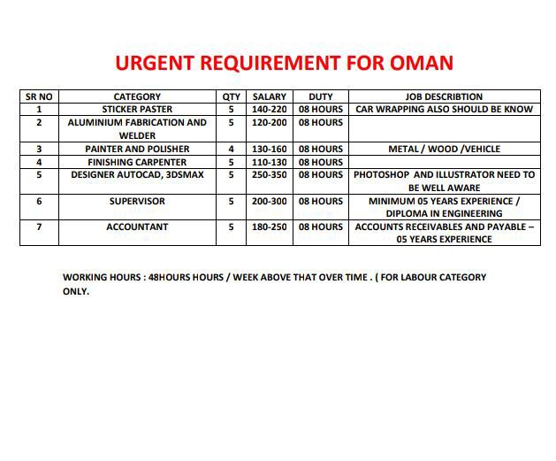 Requirements for Oman