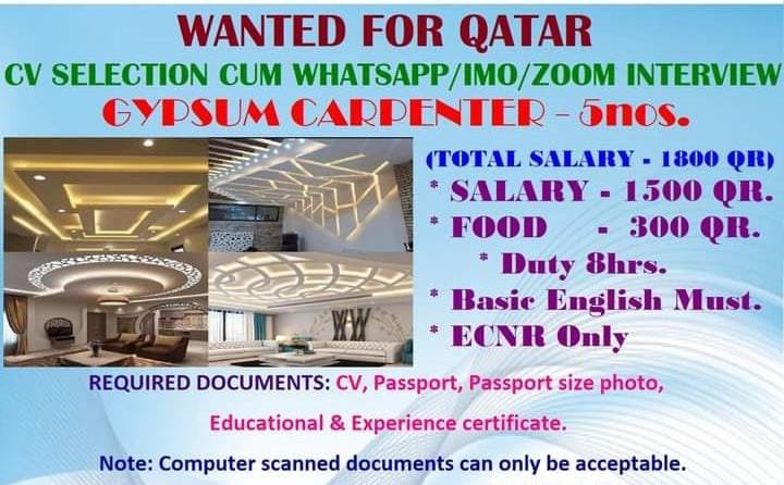 Gypsum Carpenter for Qatar