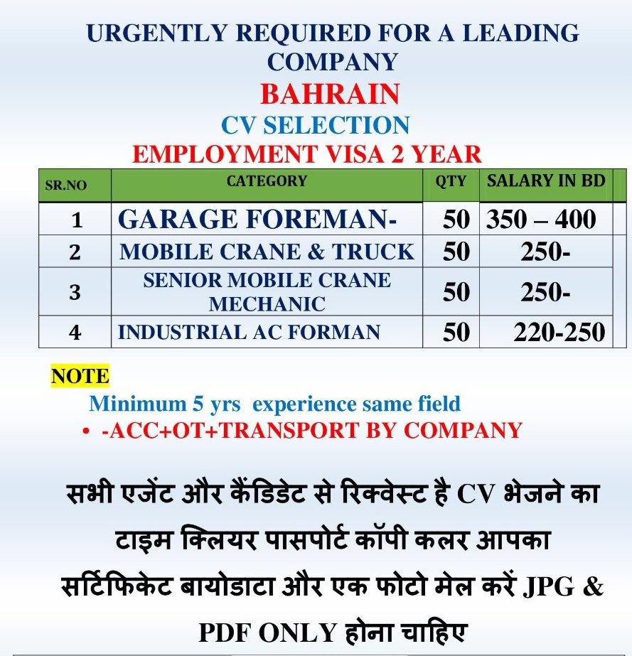 Required for Bahrain – Foreman – Mobile crane mechanic – AC foreman