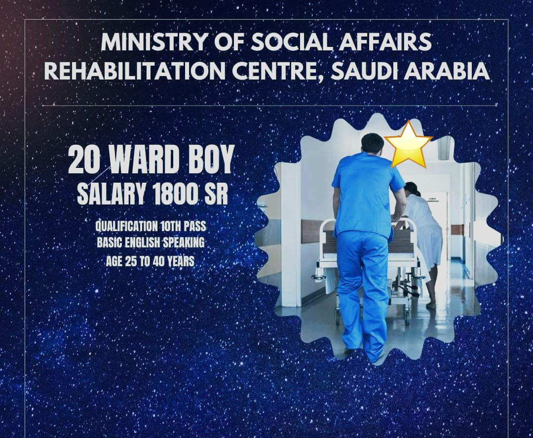 Required Ward Boys – Ministry of social affairs Rehabilitation centre – Saudi Arabia
