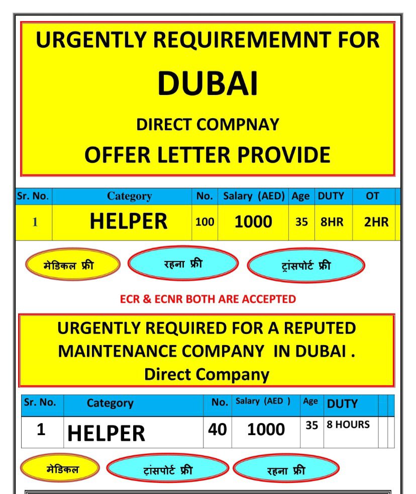 Required Helper for Dubai – 1000 AED