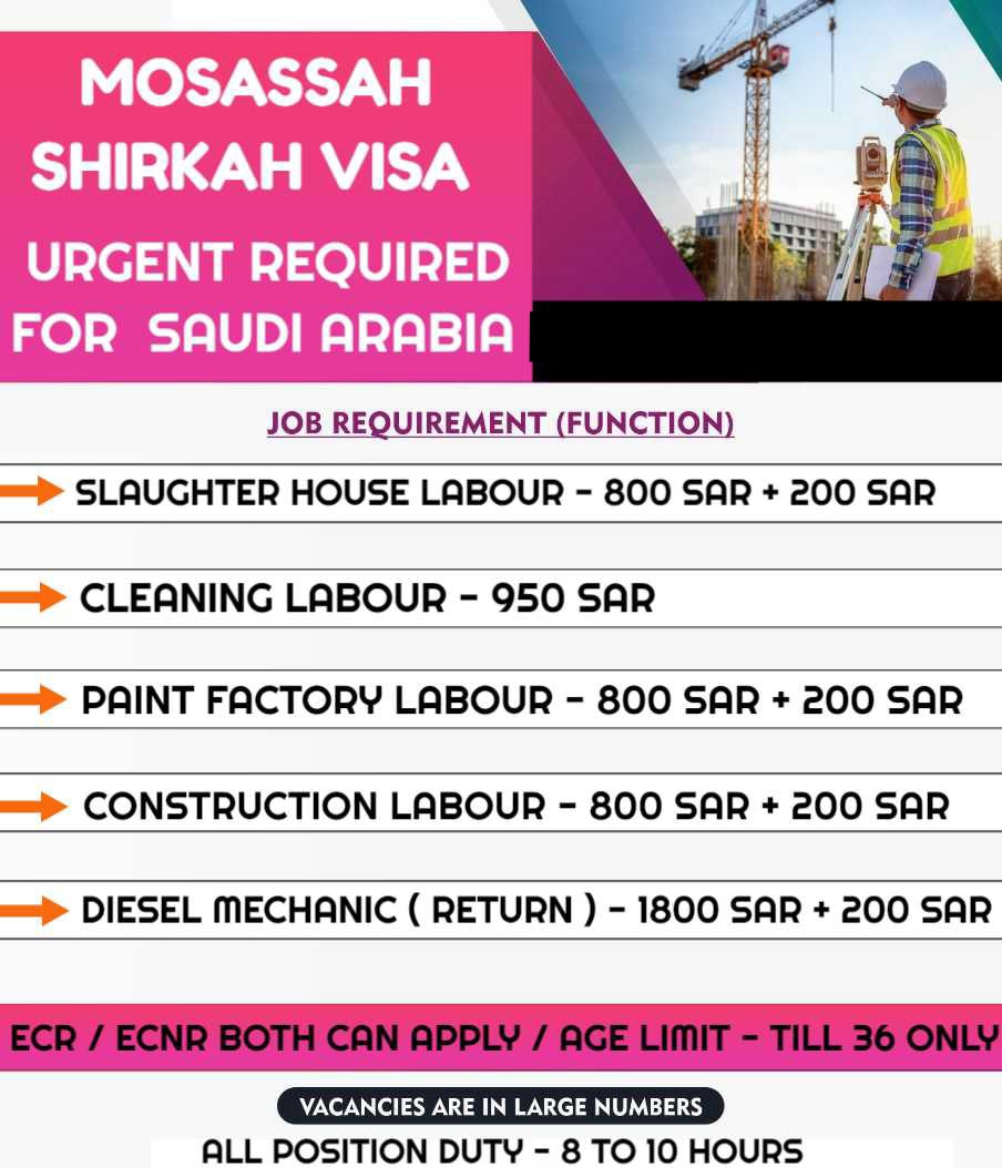CONSTRUCTION LABOUR – 800 SAR + 200 SAR