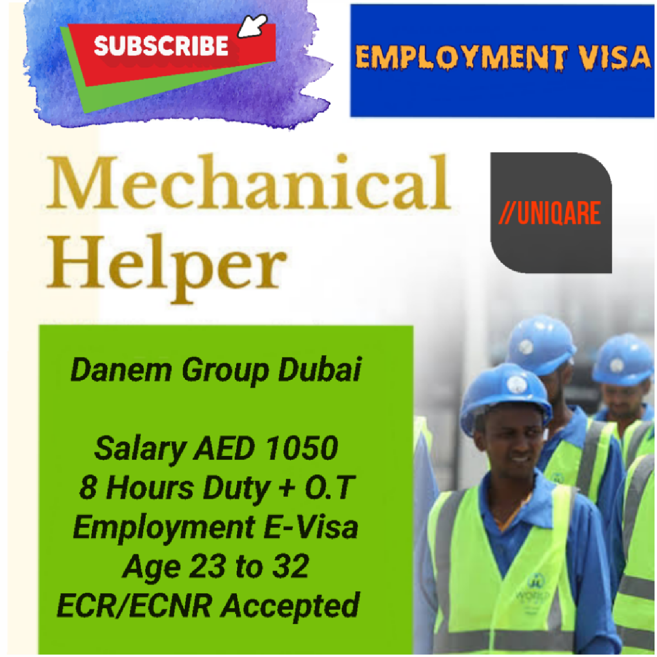 Urgent Requirement for Dubai – Danem Group – Mechanical Helper – Employment Visa – Jobs in Dubai