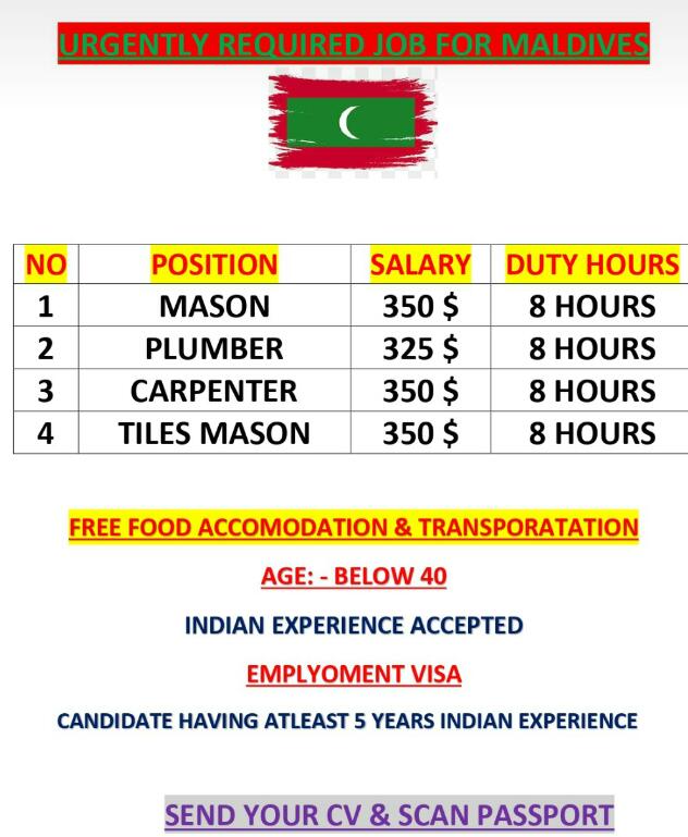 मालदीव के लिए तत्काल आवश्यक नौकरी