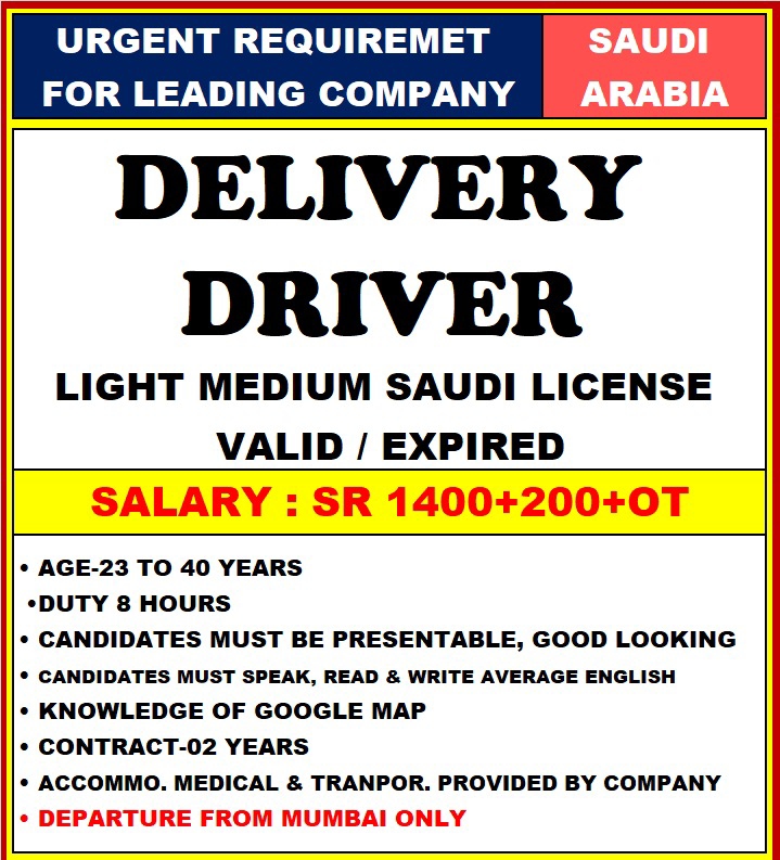 URGENT REQUIREMET FOR LEADING COMPANY IN SAUDI ARABIA