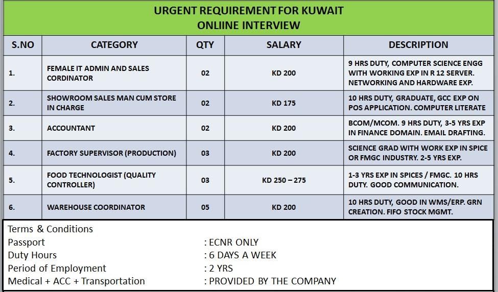 URGENT REQUIREMENT FOR KUWAIT