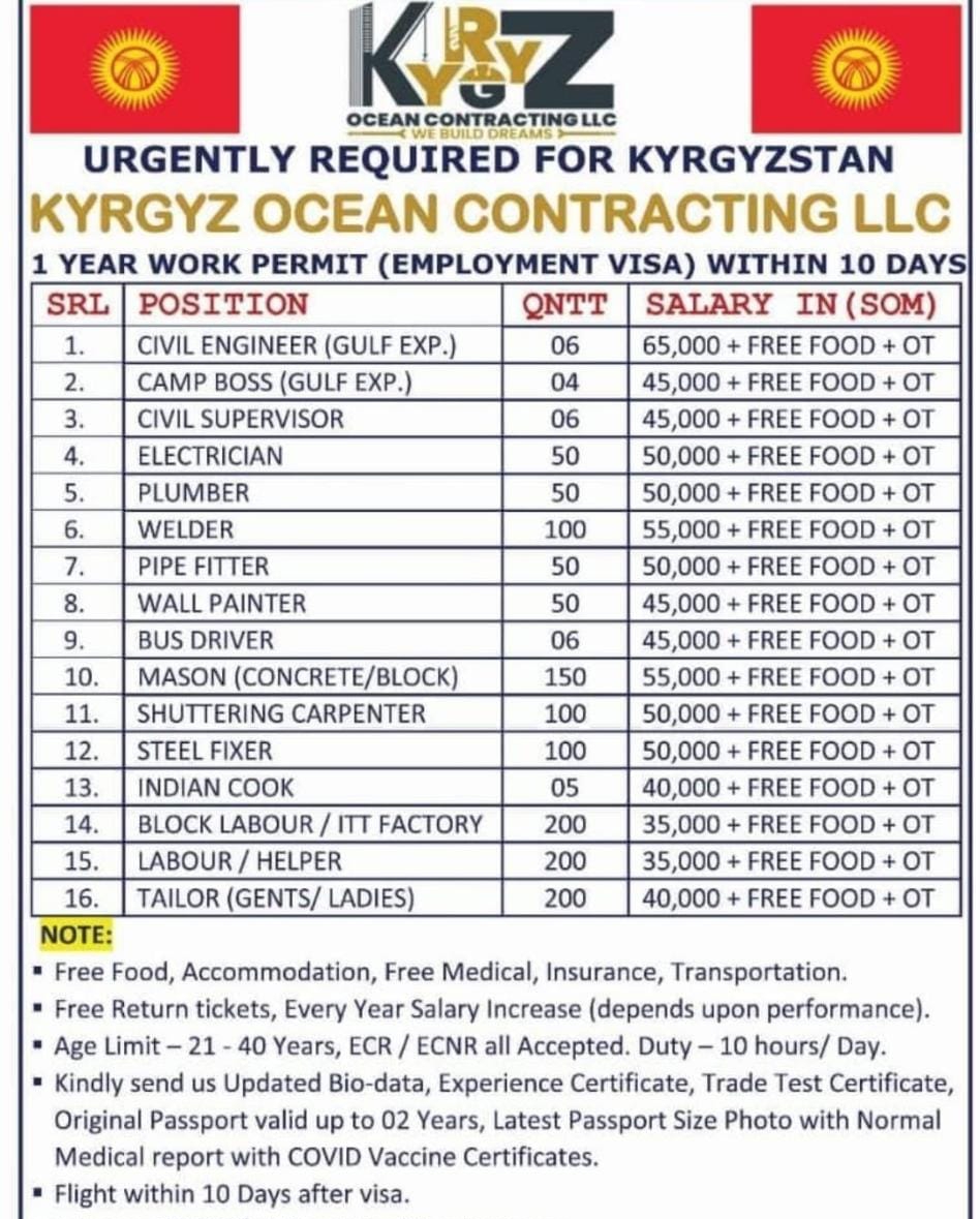 URGENTLY REQUIRED FOR KYRGYZSTAN KYRGYZ OCEAN CONTRACTING LLC