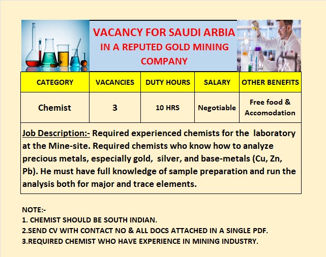 VACANCY FOR SAUDI ARBIA IN A REPUTED GOLD MINING COMPANY
