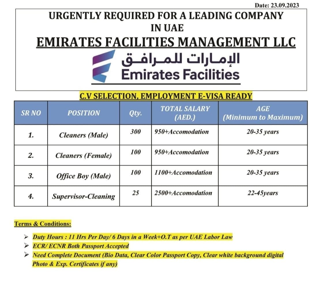 URGENTLY REQUIRED FOR A LEADING COMPANY IN UAE