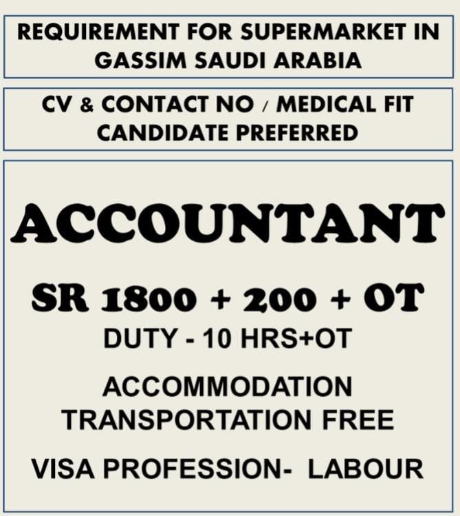 REQUIREMENT FOR SUPERMARKET IN GASSIM SAUDI ARABIA