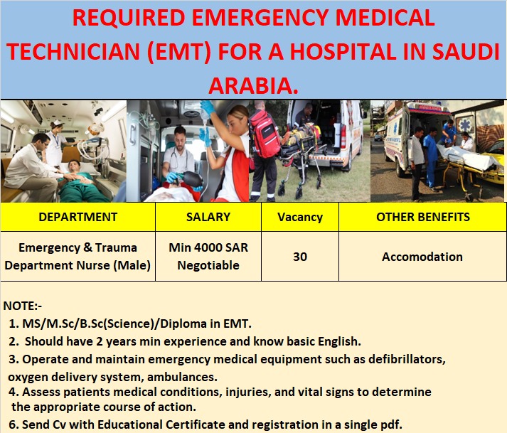 REQUIRED EMERGENCY MEDICAL TECHNICIAN (EMT) FOR A HOSPITAL IN SAUDI ARABIA