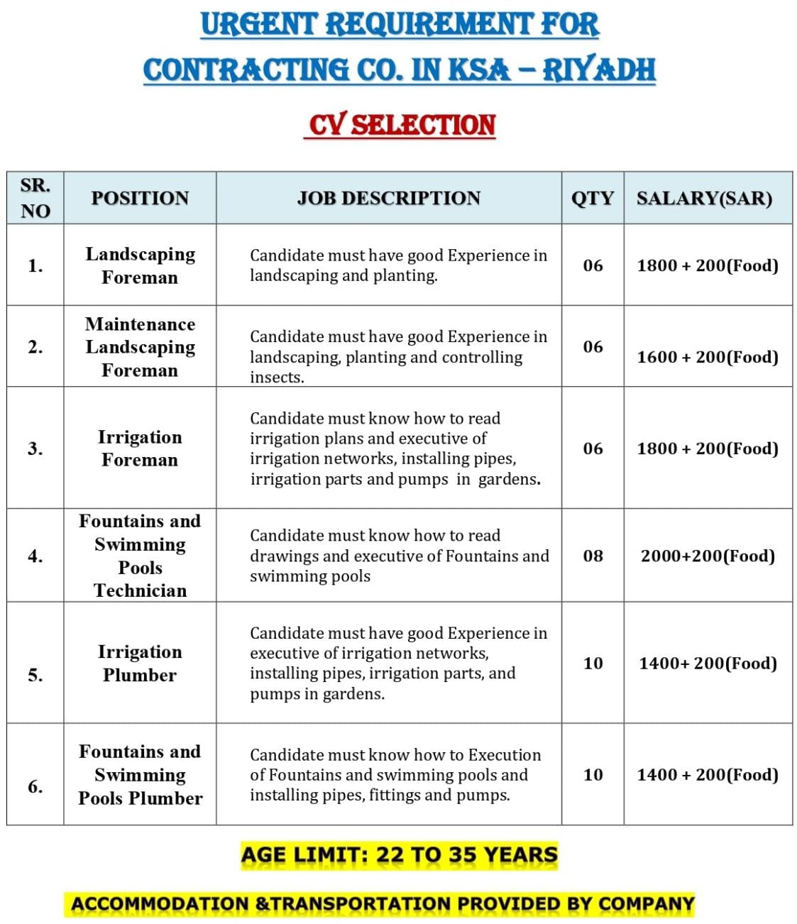 URGENT REQUIREMENT FOR CONTRACTING CO. IN KSA – RIYADH