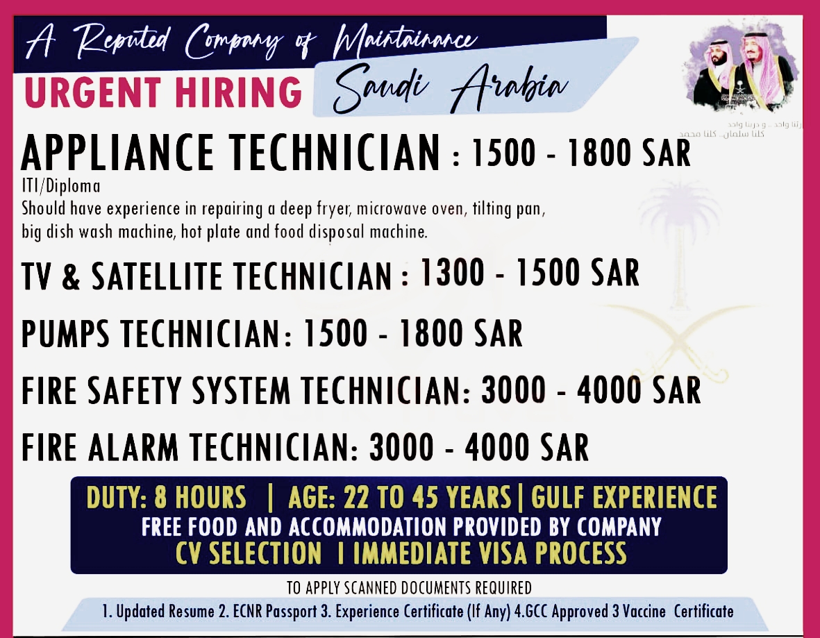 TV & SATELLITE TECHNICIAN: 1300 – 1500 SAR