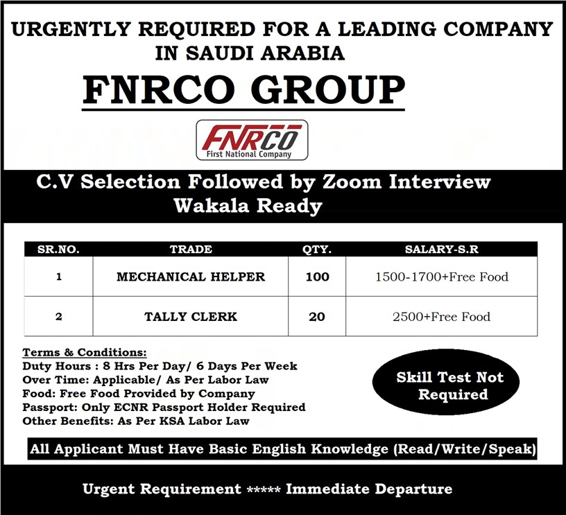 Jobs in Saudi Arabia – mechanical helper – Tall clerk – Gulf Jobs 2024