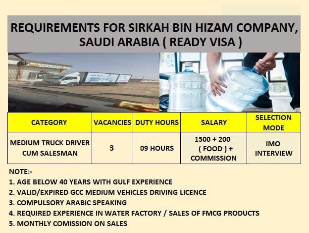 REQUIREMENTS FOR SIRKAH BIN HIZAM COMPANY, SAUDI ARABIA (READY VISA)