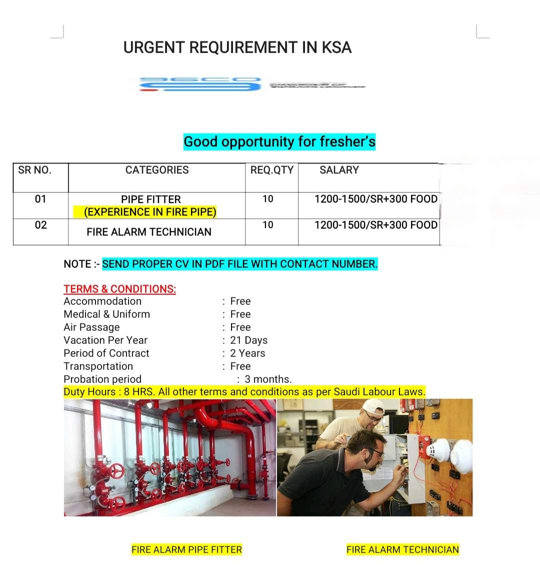 URGENT REQUIREMENT IN KSA