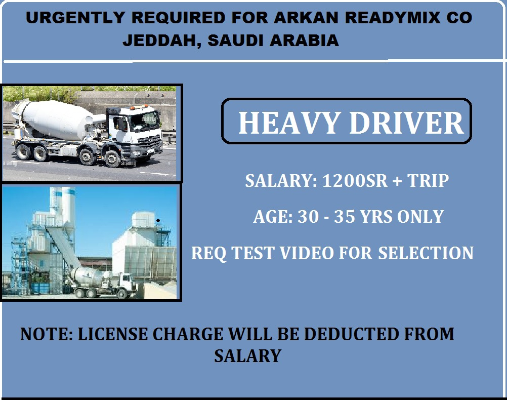 Required Heavy Driver Fresh for Arkan Ready Mix Company