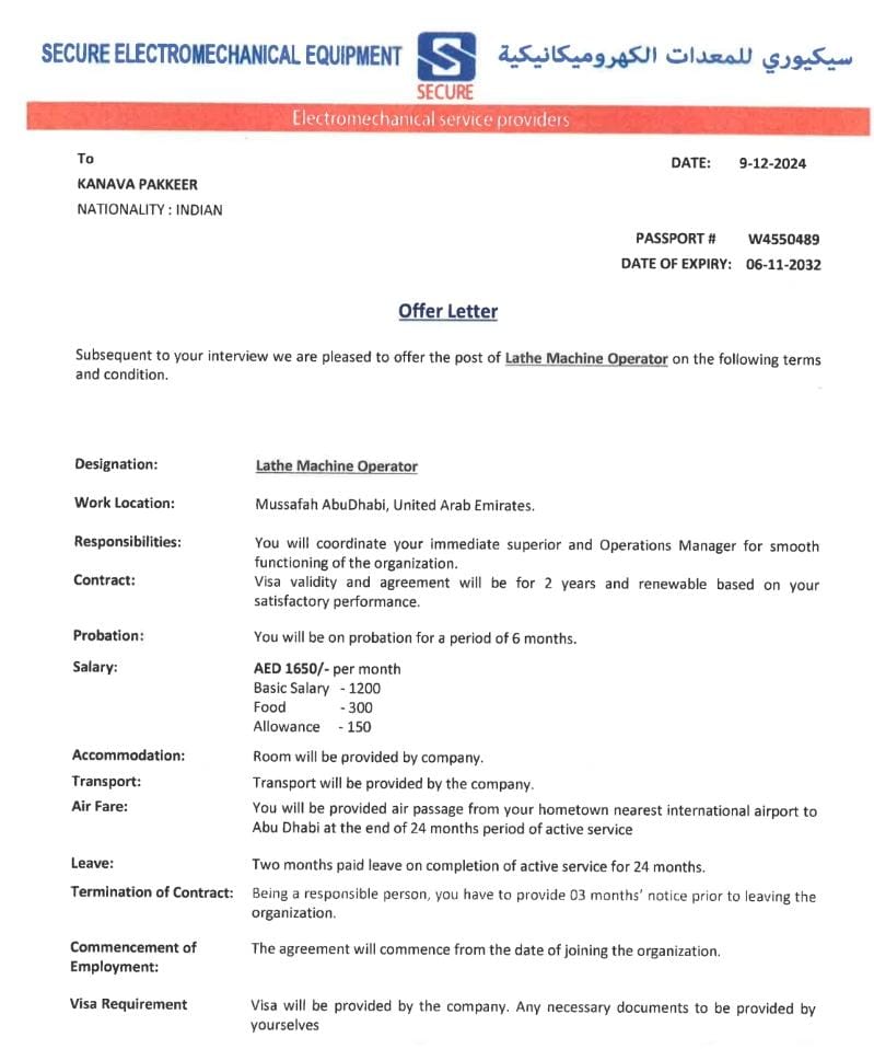 Required for Secure Electromechanical Equipment Abu Dhabi UAE  – Lathe Machine Operator – Video selection – Good salary package – Apply Now