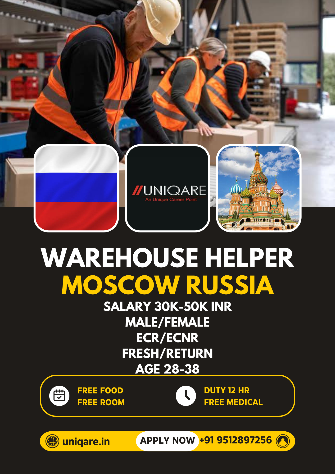 Jobs in Russia Moscow – Warehouse Helper – Male Female both – 50k Salary