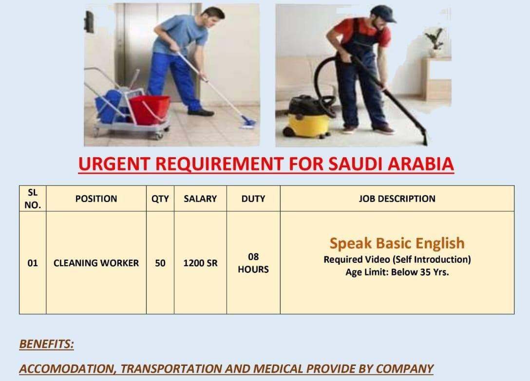 Requirements for Saudi Arabia – Cleaner – Company Visa
