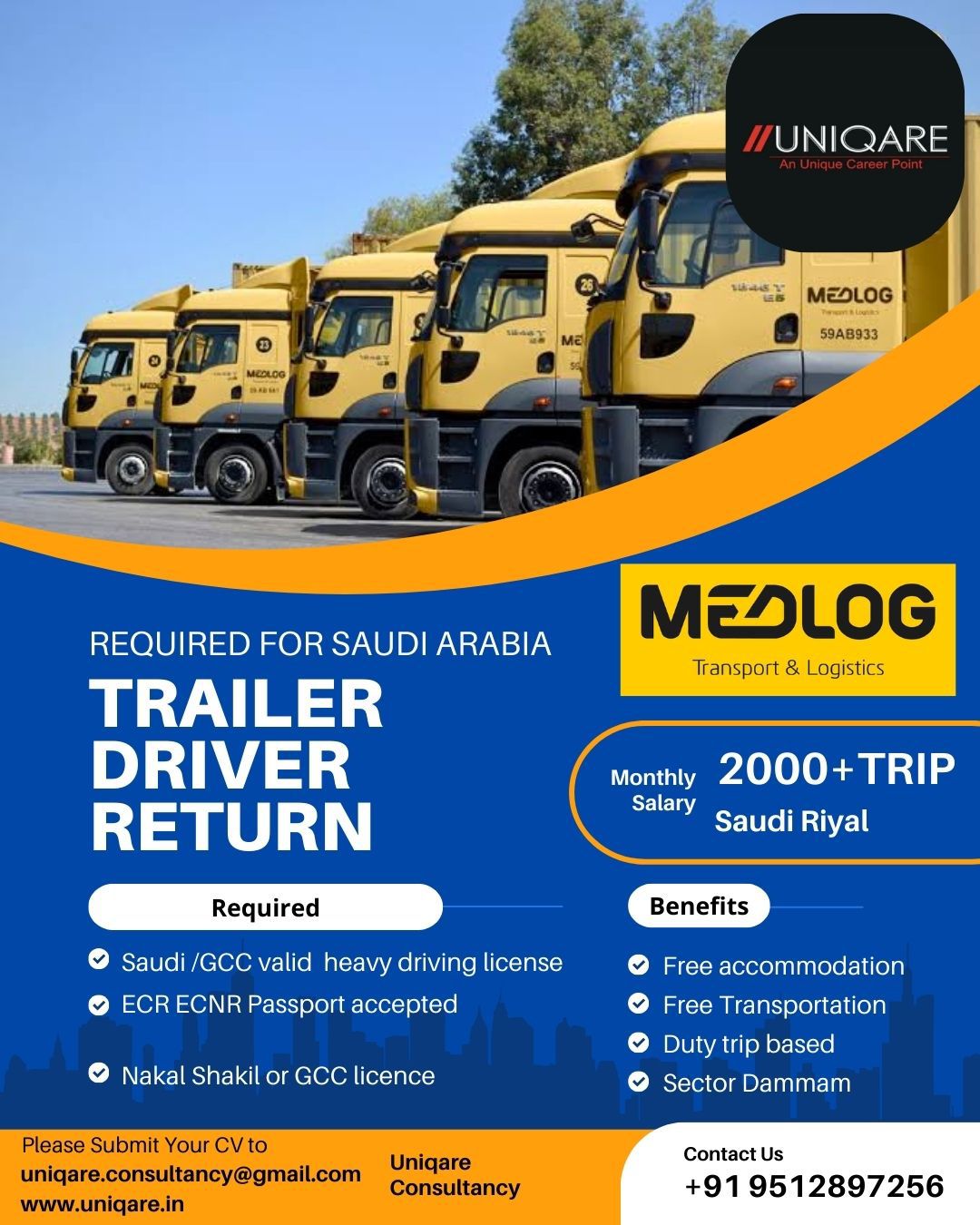 Required Trailer Driver return for Medlog Transport Logistics company Saudi Arabia