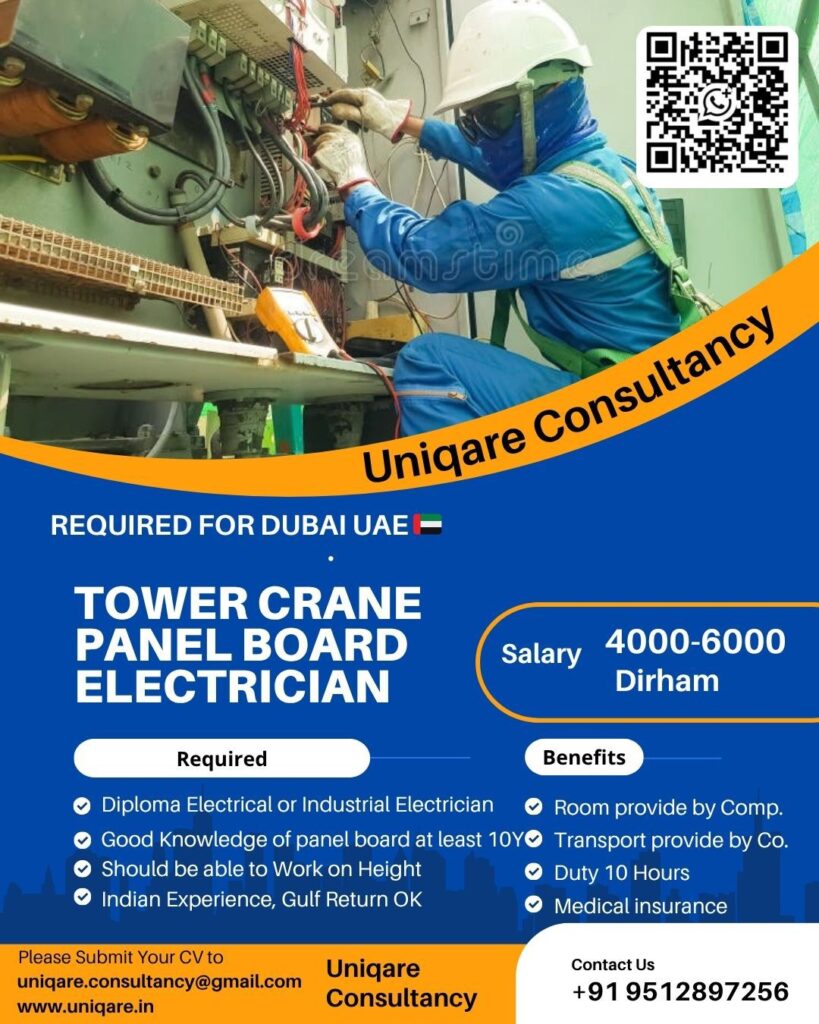 Tower Crane Electrician – Panel Board Electrician – Industrial Electrician Job in Dubai UAE