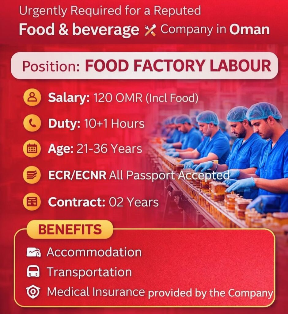 Urgently Required for Reputed Company in Oman