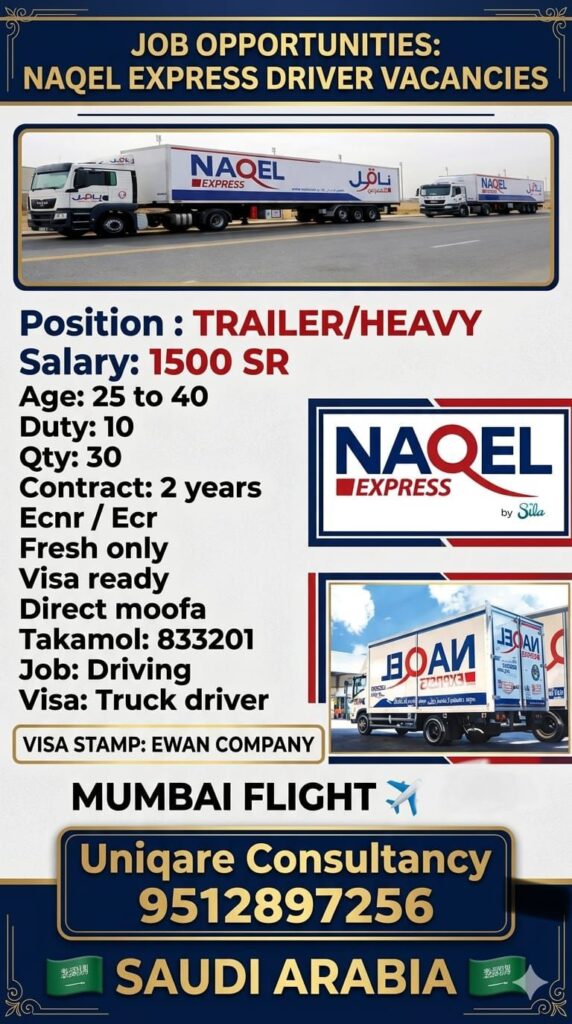 Heavy Driver – Trailer Driver Job in Saudi Arabia – Naqel Express Company Saudi Arabia