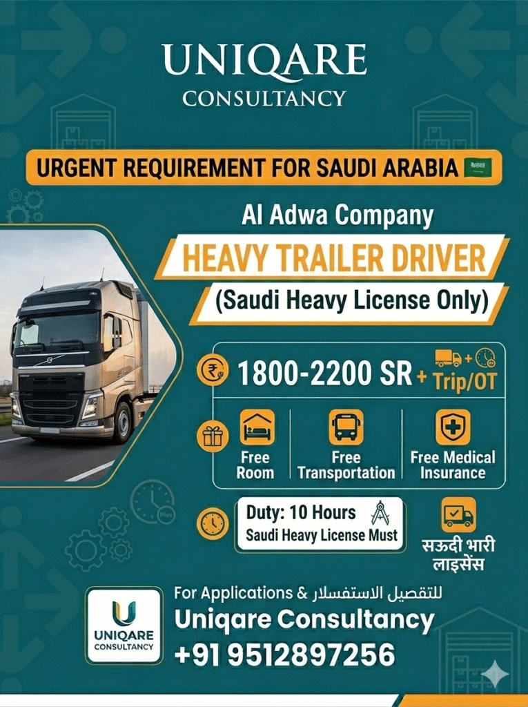 Al Adwa Company Saudi Arabia – Required Heavy Trailer Driver – Nakal Shakil License – Apply Now