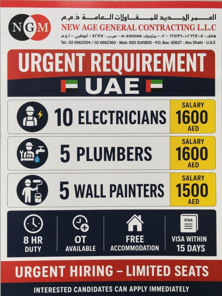 Gulf jobs, Europe Jobs, Abroad Jobs, Overseas Jobs Call +91 9512897256